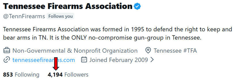 Tennessee must have its political threats figured out if that’s all from the estimated 51.6% of gun owning households who care enough to even keep up with what their state organization is doing (let alone joining it).